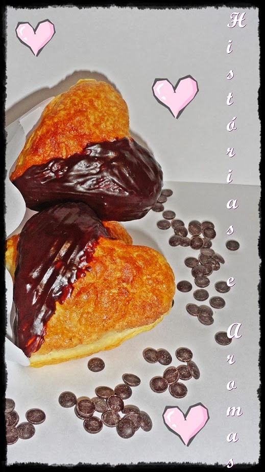- Derrete-se o chocolate em banho maria e mergulha-se metade do coração, repete-se a operação até terminar os corações;