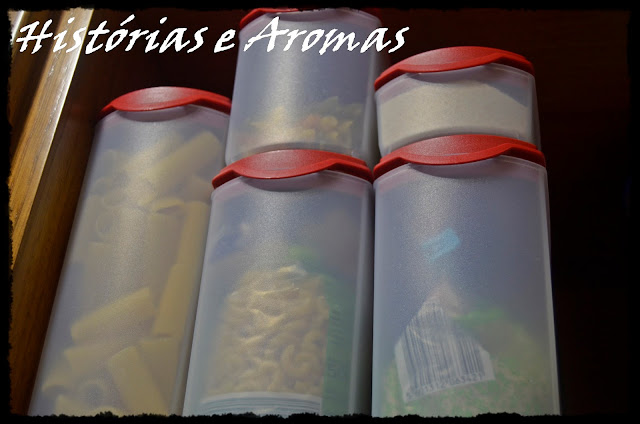 Mas por exemplo, as massas que utilizamos para as sopas, não retiro do pacote, coloco os pacotes das massinhas todas juntas numa expresso , para mim é mais prático assim, o mesmo aplico ao arroz. Tenho mais do que uma variedade e assim junto os pacotes numa expresso também.